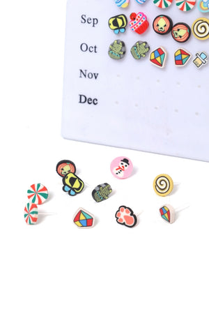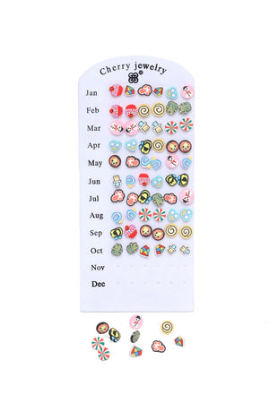 This adorable collection includes 36 pairs of colorful and quirky stud earrings, From ice cream cones and flip-flops to snowmen and candy swirls, each design adds a pop of personality and fun to your daily outfits.