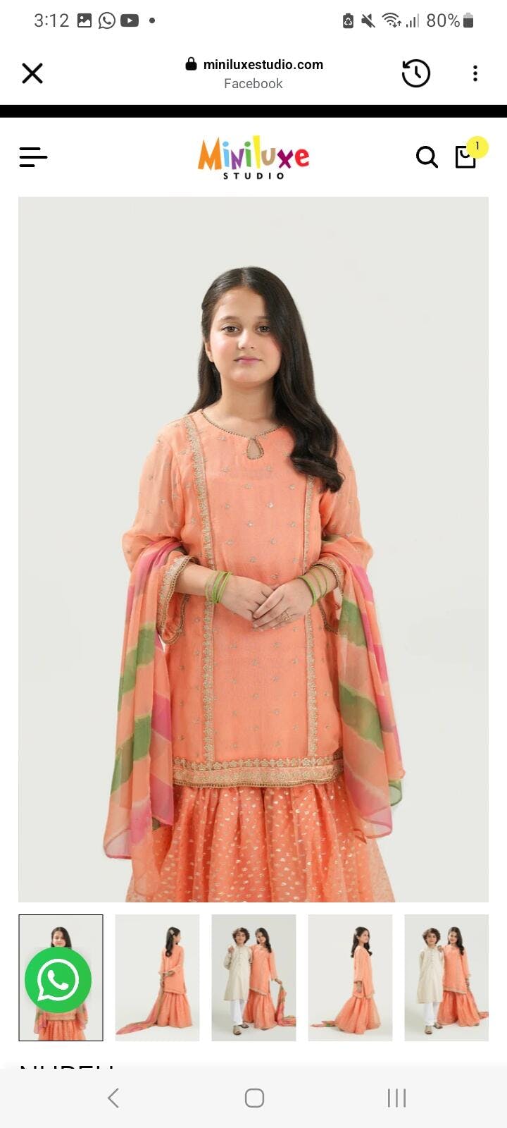 • Color: Soft peach with multicolor dupatta